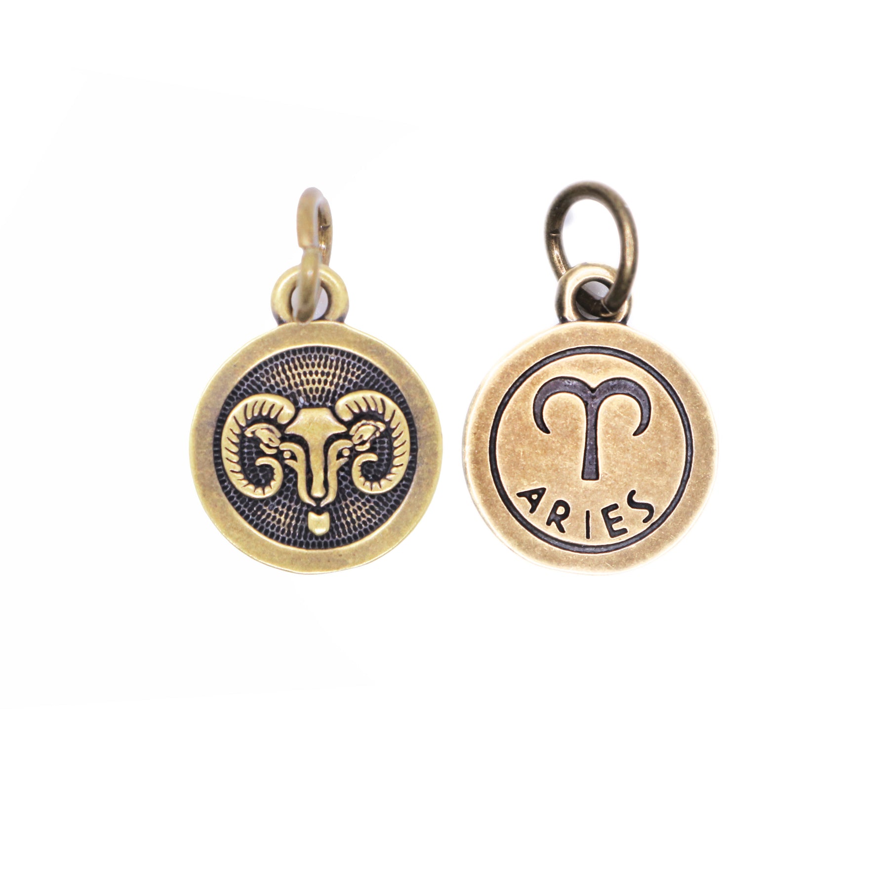 Celebrate your fiery Aries spirit with this Zodiac charm featuring the iconic ram symbol on one side, with the zodiac symbol & name on the other.