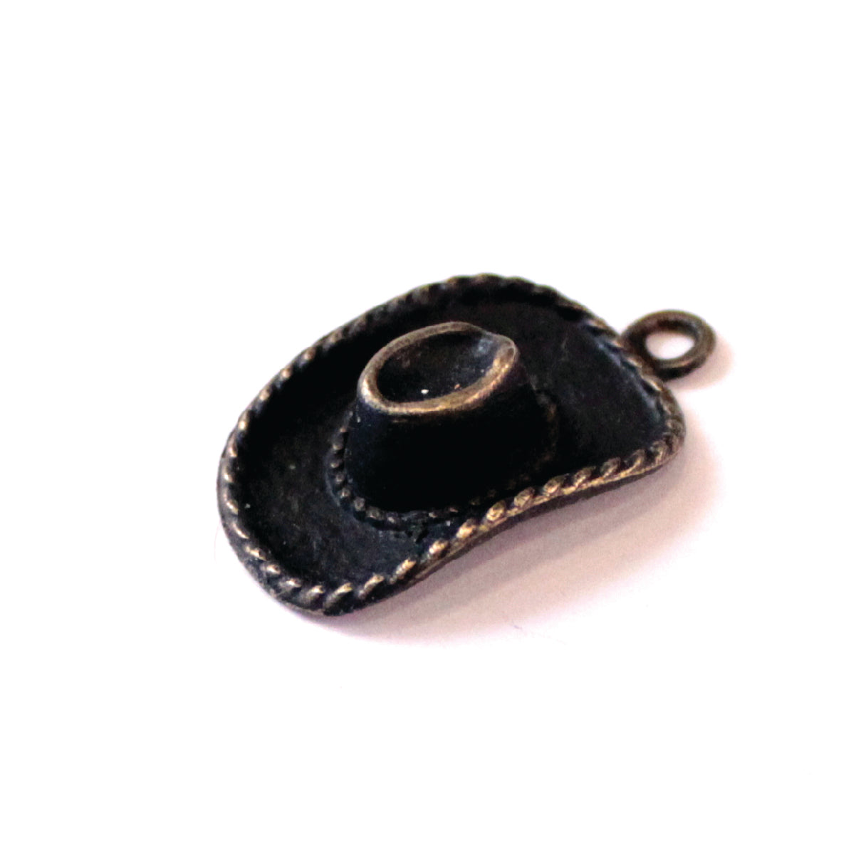 Cowboy Hat Charm - Hand-painted, Artisan-made, Hypoallergenic, Available as Charm on Card, Bracelet, or Necklace, 3/4" Size.
