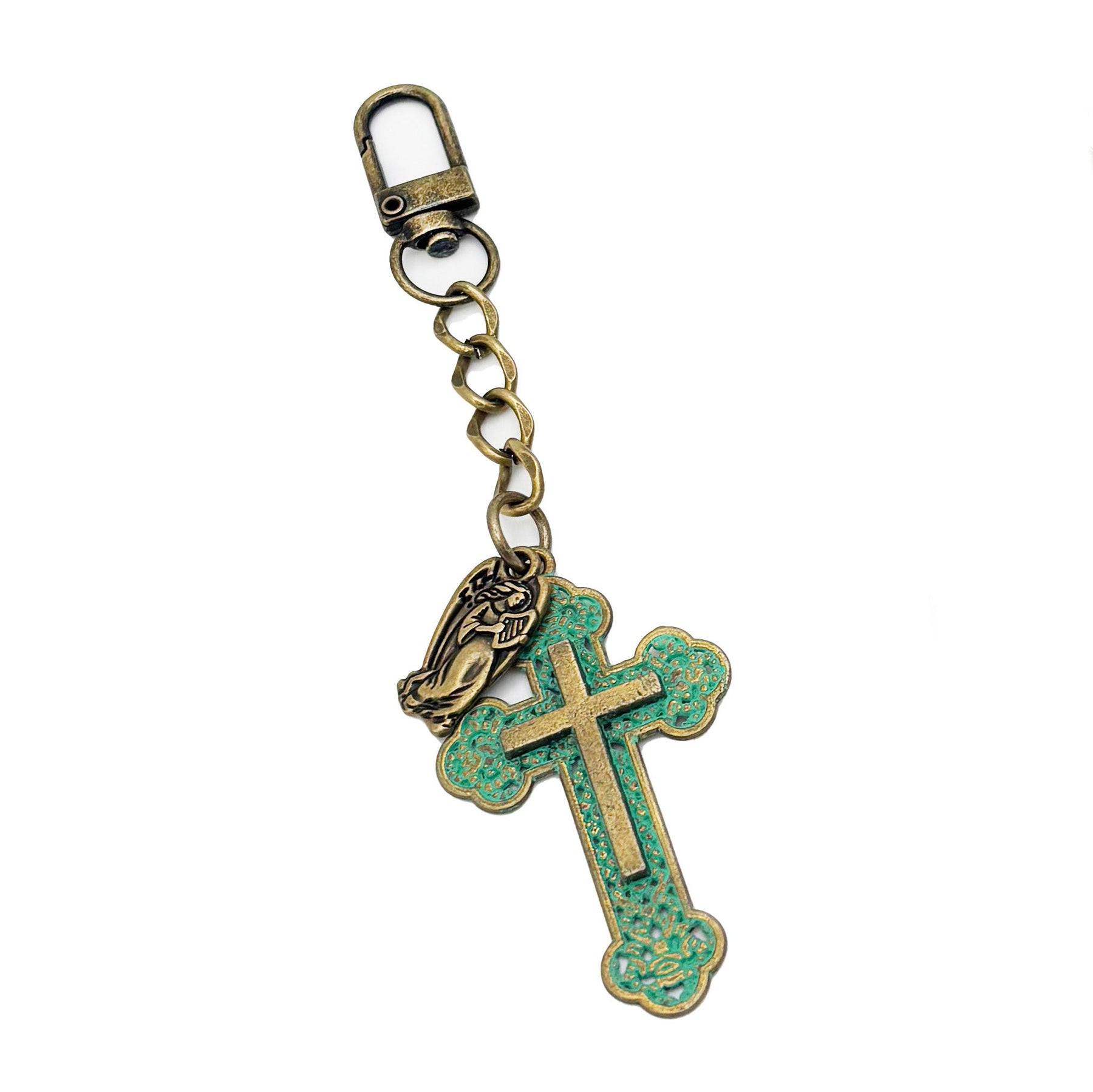 Dress up your handbag with this charming new trend - bag charms can double as a keychain. Featuring a decorative cross and guardian angel on a modern lobster claw.