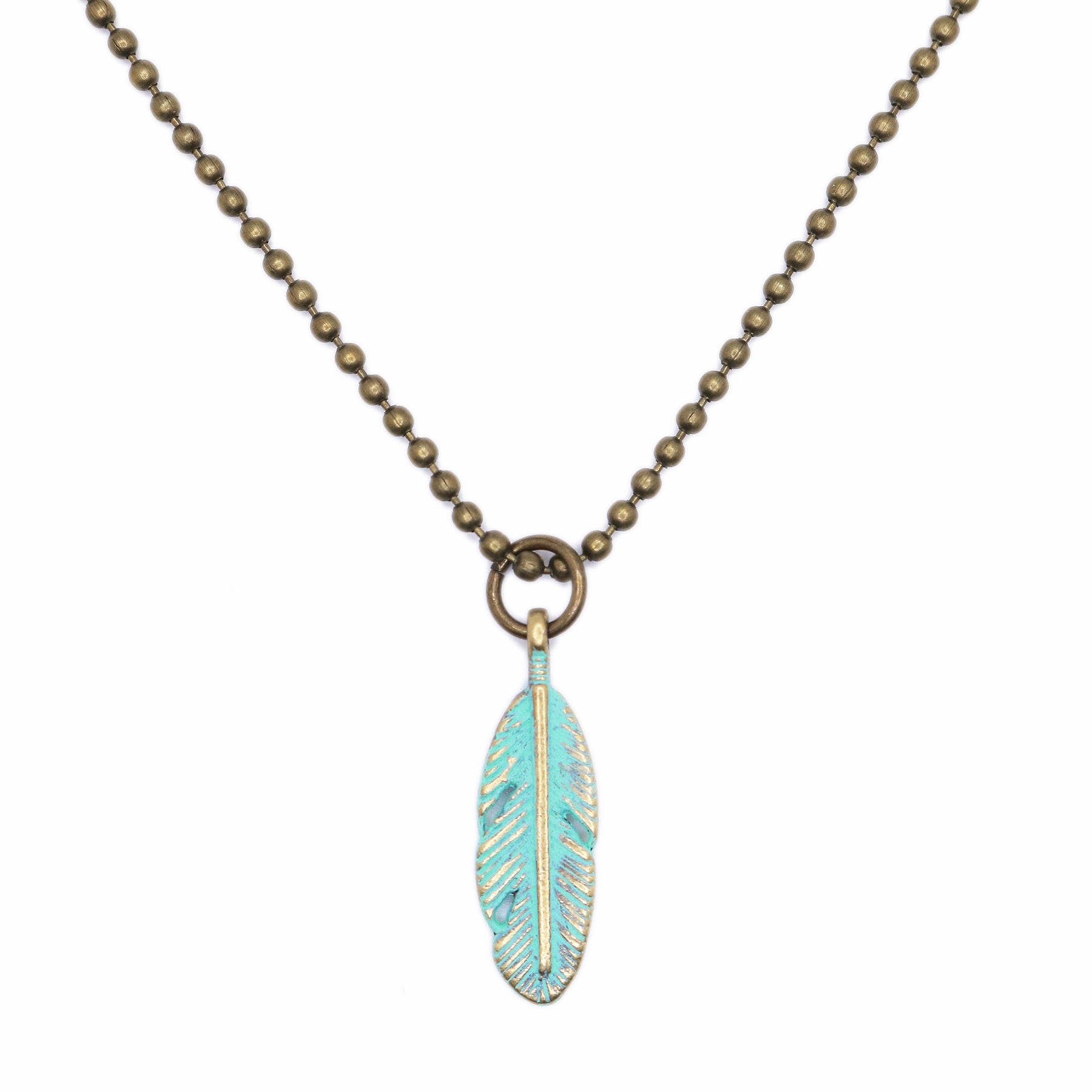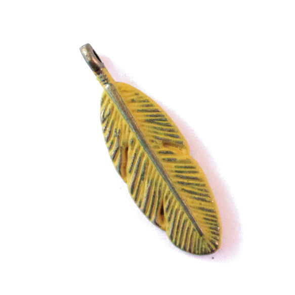 Hand-painted Feather Charm with bohemian vibes, available as a charm on card, bracelet, or necklace. Hypoallergenic and crafted in Denver, CO.