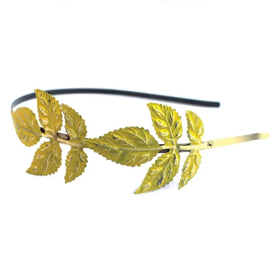 Evoke Grecian elegance with our Goddess Headband – adorned with large, lightweight leaves, capturing the essence of laurel wreaths for a touch of divine style.Leaf detail measures approximately 5” long.