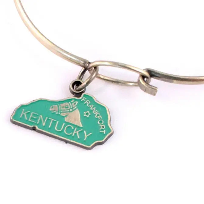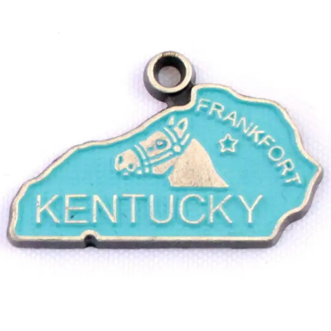 Show your Bluegrass State pride with this Kentucky State Charms, showcasing the state map and a spirited racehorse image.
