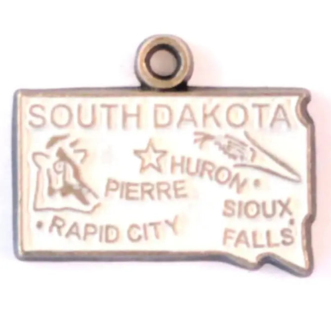 Discover the Mount Rushmore State with this South Dakota map-shaped charm adorned with iconic agricultural symbols.
