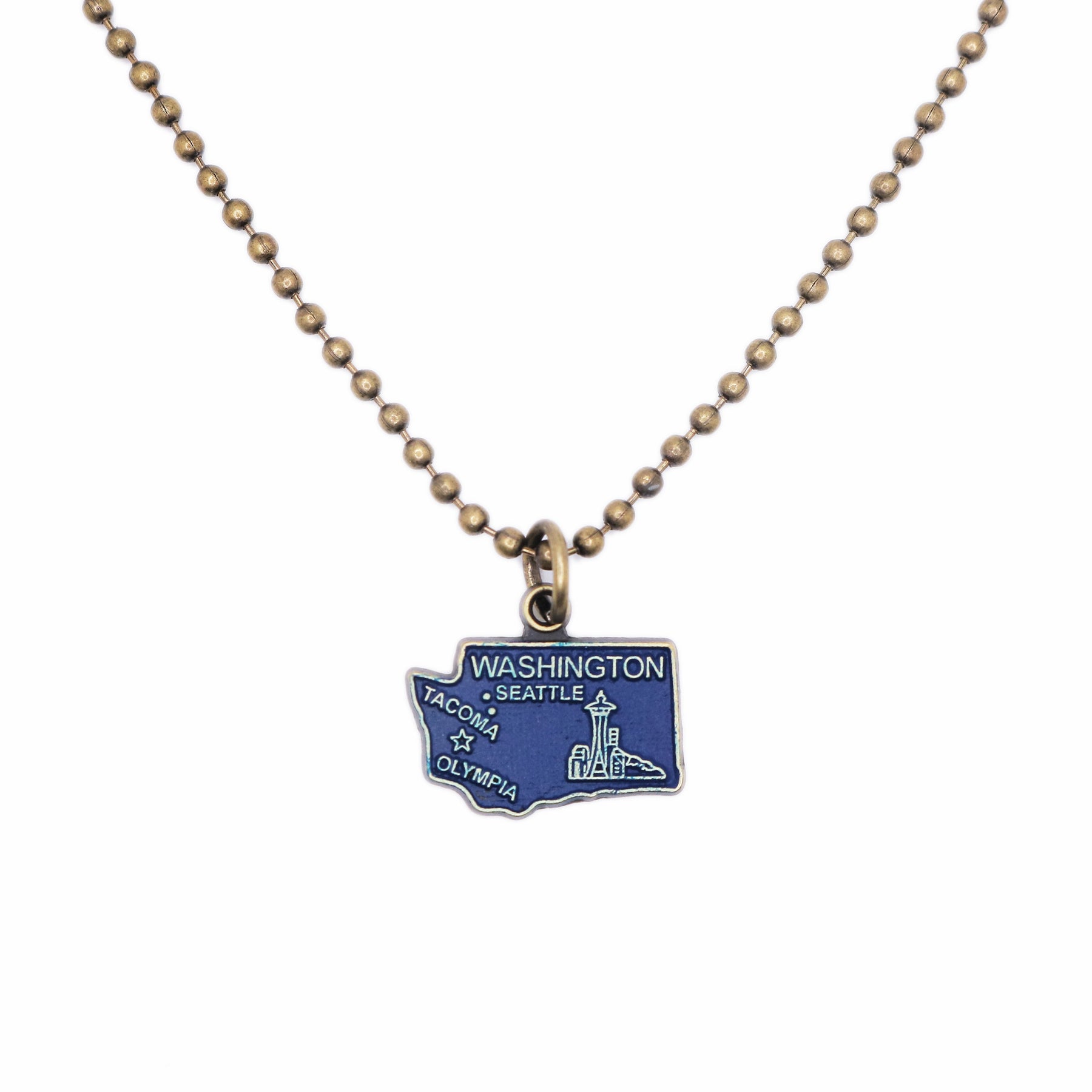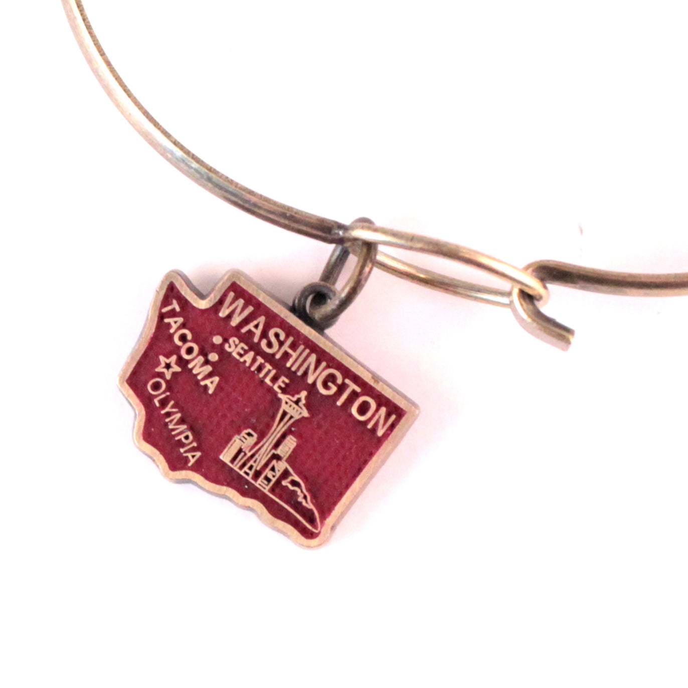 This Washington State Charm showcases the Evergreen State map, featuring the Seattle skyline, Space Needle and the majestic Cascade Mountain Range.