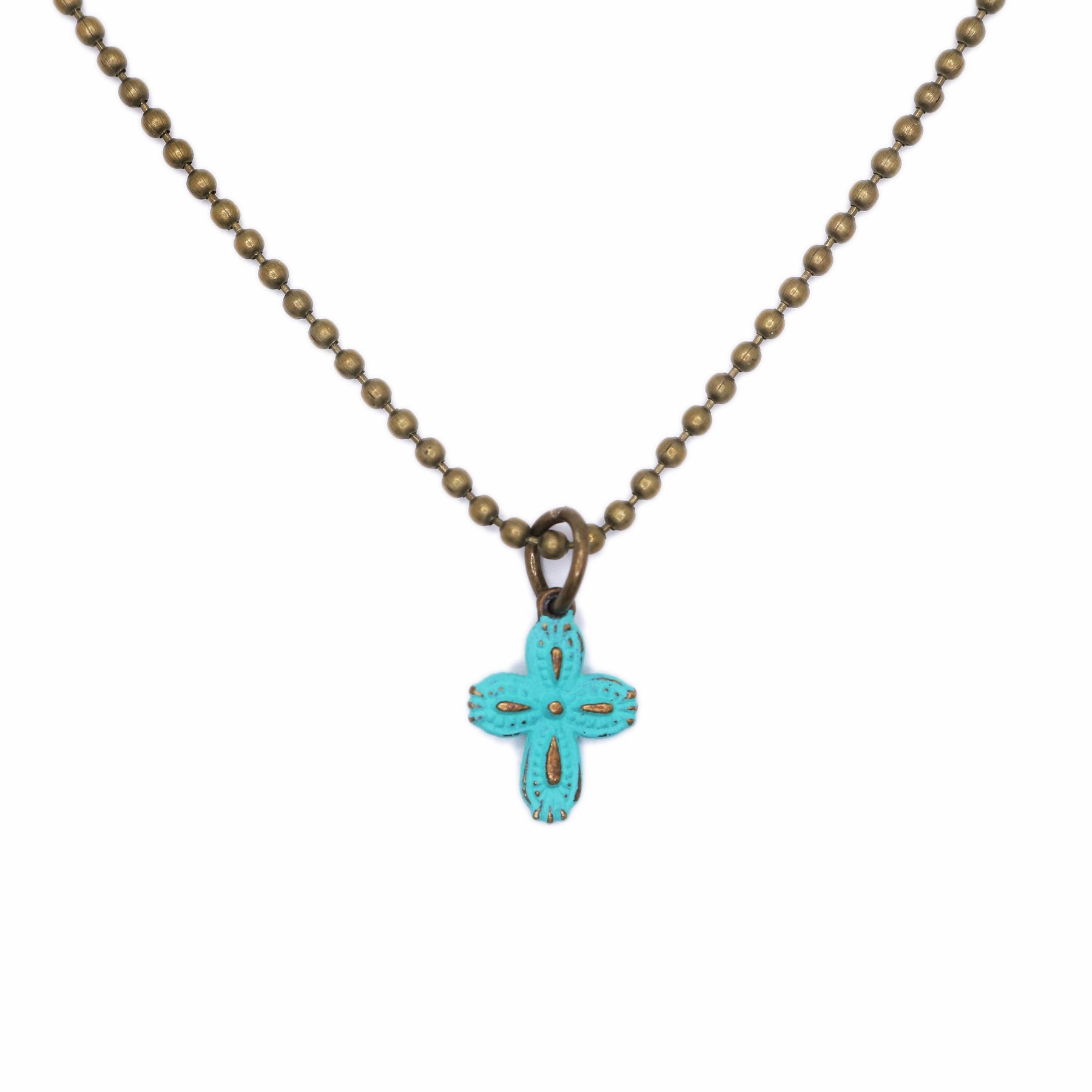 Western Cross Charm - Hand-painted, ½” size, available as a card charm, 7” brass hook bangle bracelet, or 18” antique bronze ball chain necklace. Hypoallergenic, lead-free, and nickel-free.